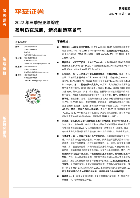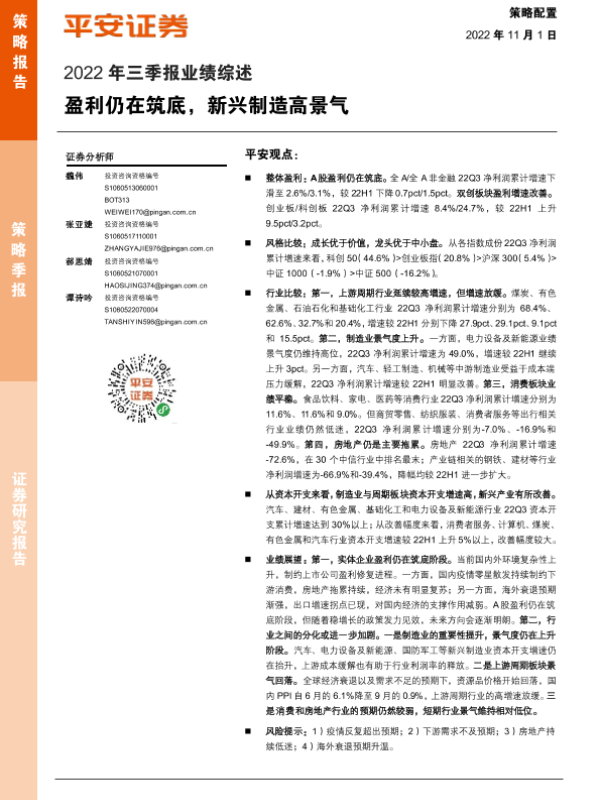 【平安证券】【20221101】2022年三季报业绩综述:盈利仍在筑底,新兴制造高景气-11页