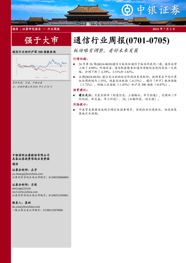 【中银证券】【20240702】通信行业周报:板块略有调整,看好未来发展-17页