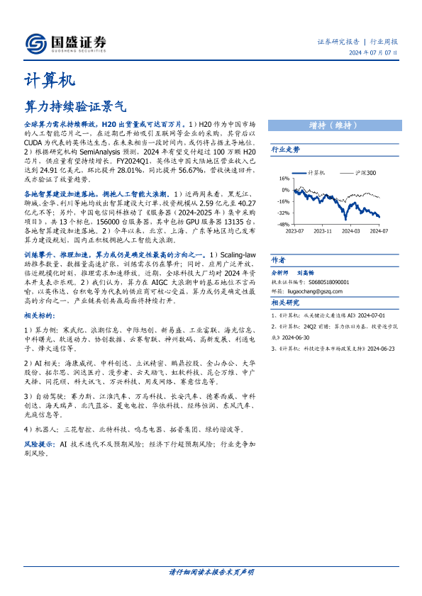【国盛证券】【20240707】计算机行业周报:算力持续验证景气-11页
