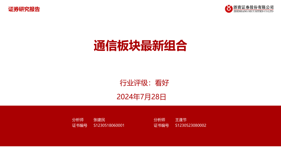投资分析 最新组合 行业评级 证券研究 通信板块