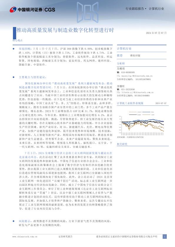 【银河证券】【20240707】计算机行业行业跟踪报告:推动高质量发展与制造业数字化转型进行时-11页