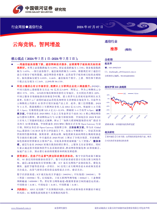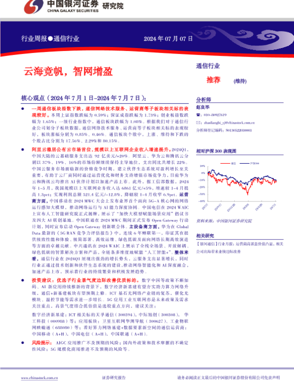 【银河证券】【20240707】20240707-中国银河-通信行业行业周报:云海竞帆,智网增盈-14页