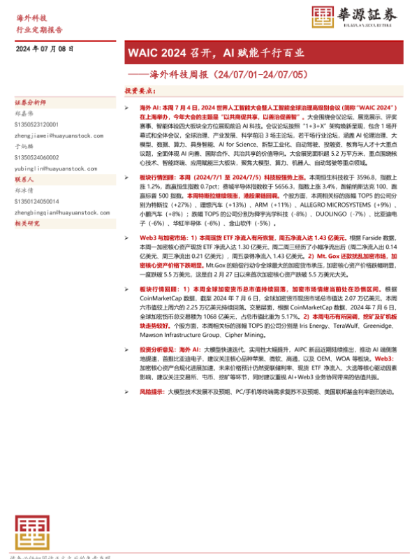 【华源证券】【20240708】海外科技周报:WAIC 2024召开,AI赋能千行百业-12页
