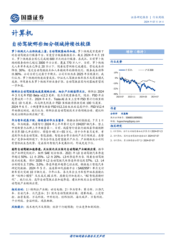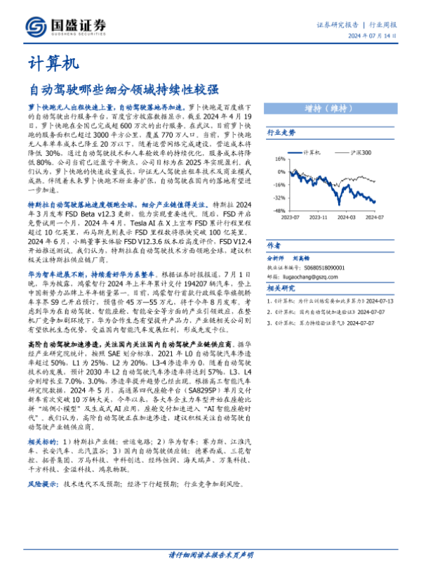 【国盛证券】【20240714】计算机行业周报:自动驾驶哪些细分领域持续性较强-14页