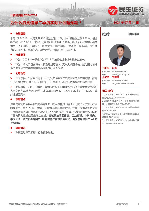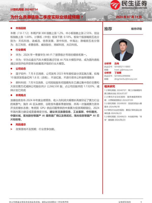 【民生证券】【20240714】为什么浪潮信息二季度实际业绩超预期 ?-13页