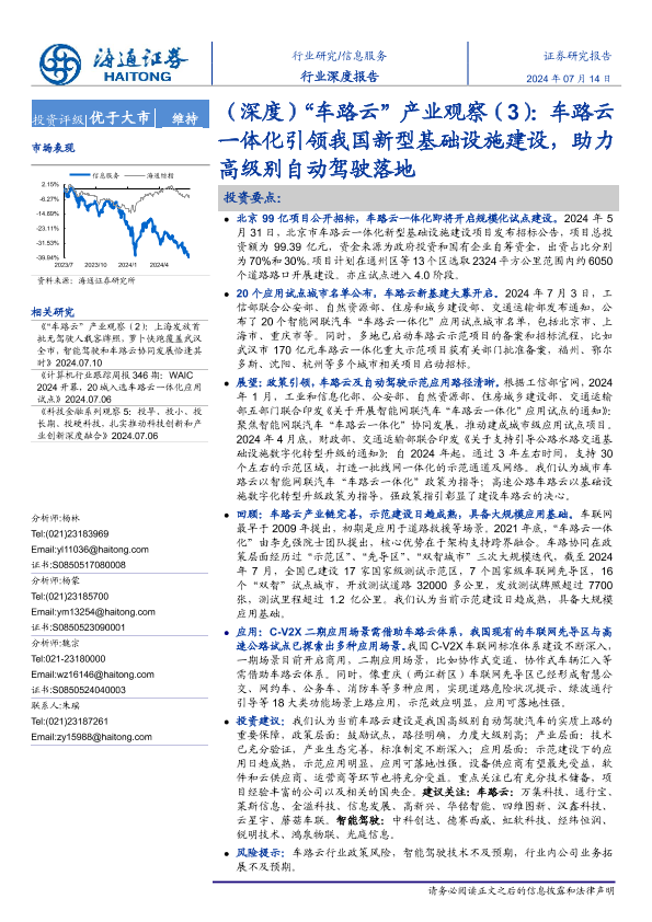 【海通证券】【20240714】(深度)“车路云”产业观察(3):车路云一体化引领我国新型基础设施建设,助力高级别自动驾驶落地-19页