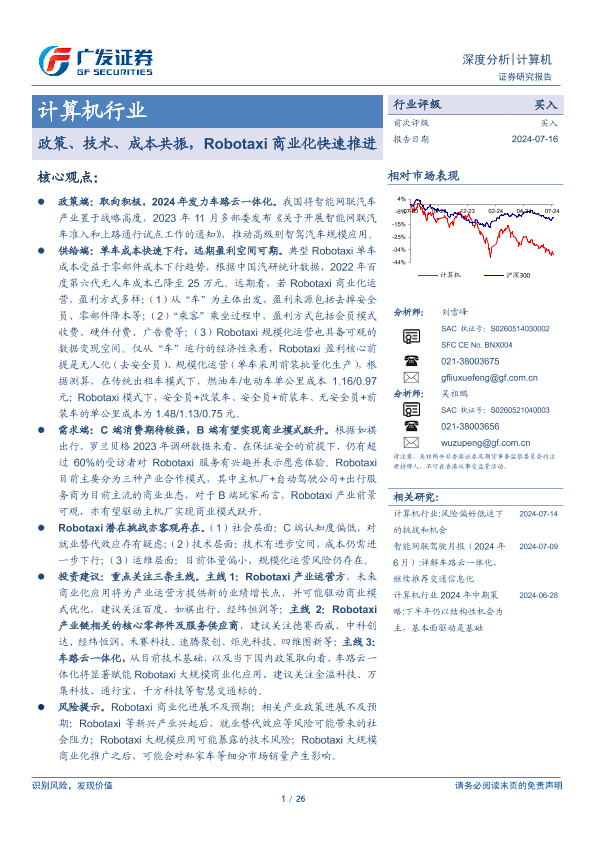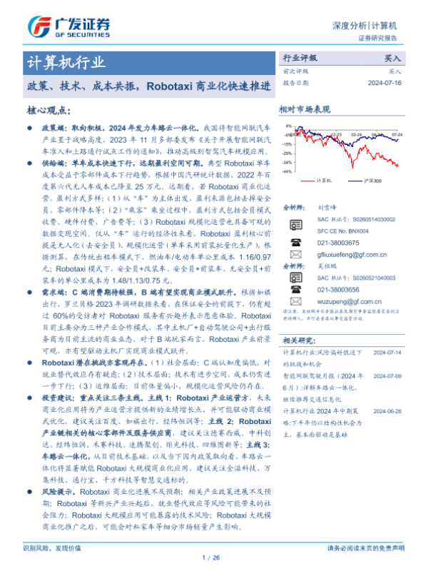 【广发证券】【20240716】计算机行业:政策、技术、成本共振,Robotaxi商业化快速推进-26页