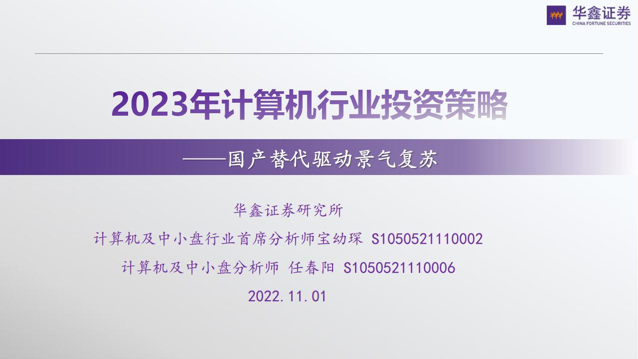 【华鑫证券】【20221101】2023年计算机行业投资策略:国产替代驱动景气复苏-23页