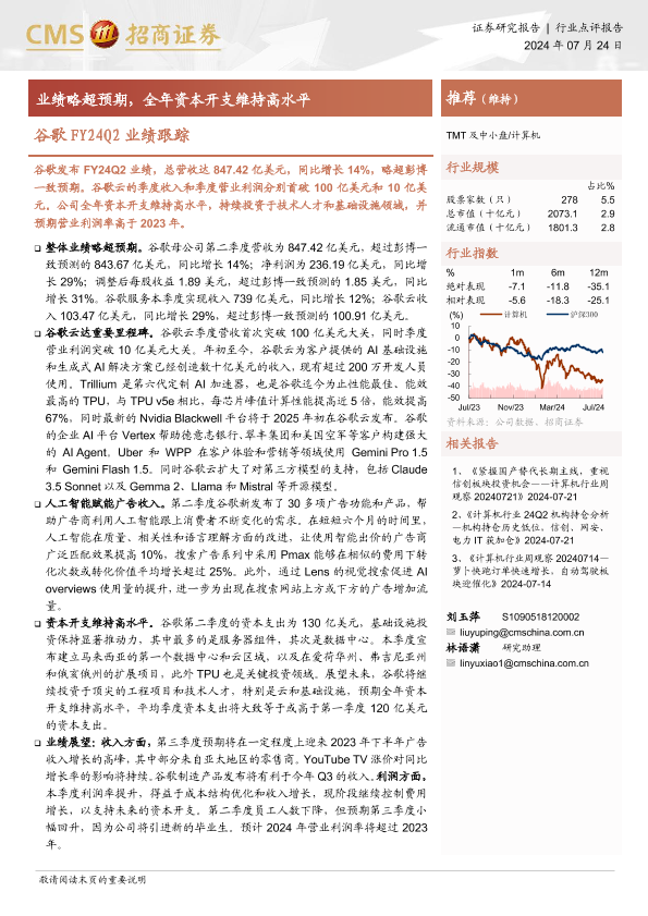 【海通证券】【20240724】谷歌FY24Q2业绩跟踪:业绩略超预期,全年资本开支维持高水平-17页