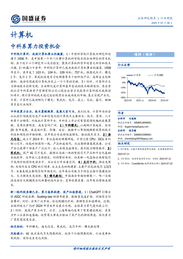 【国盛证券】【20240728】计算机行业周报:中科系算力投资机会-18页