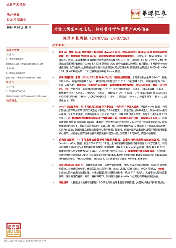 【华源证券】【20240729】海外科技周报:开源大模型加速追赶,特朗普呼吁加密资产战略储备-15页