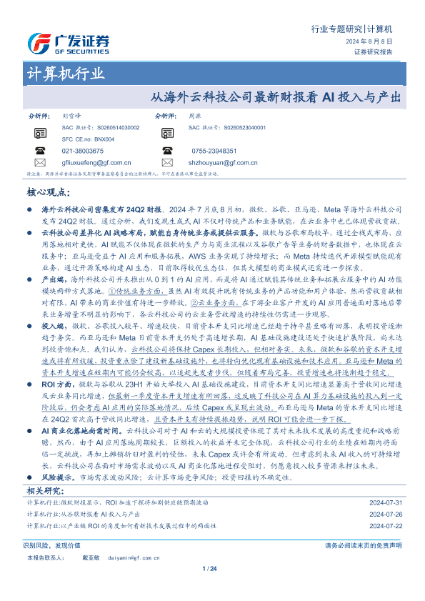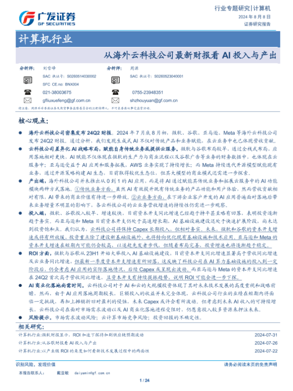 【广发证券】【20240808】从海外云科技公司最新财报看AI投入与产出-24页