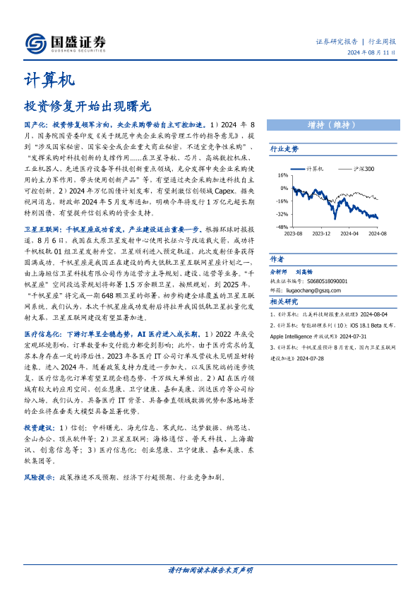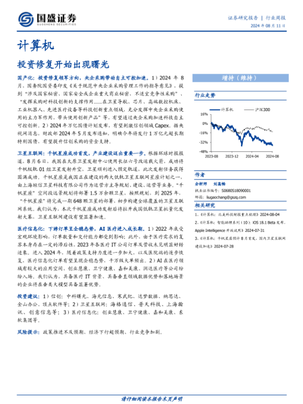 【国盛证券】【20240811】计算机行业周报:投资修复开始出现曙光-12页