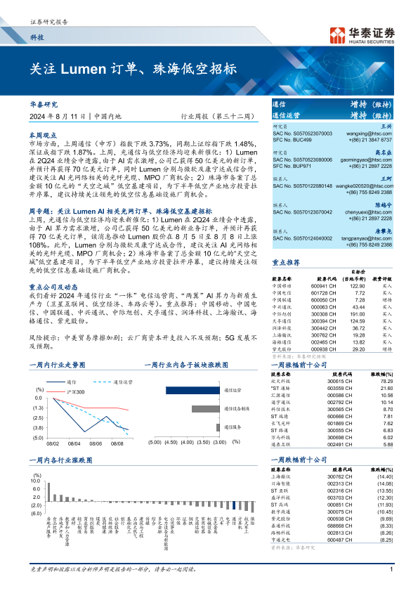 【华泰证券】【20240811】科技行业周报(第三十二周):关注Lumen订单、珠海低空招标-17页