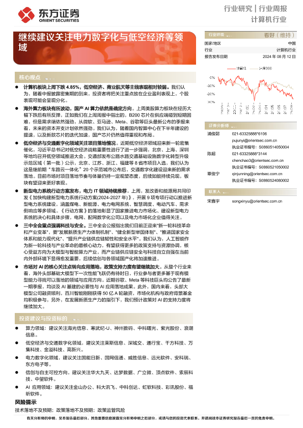 【东方证券】【20240812】20240812-东方证券-计算机行业周报:继续建议关注电力数字化与低空经济等领域-13页