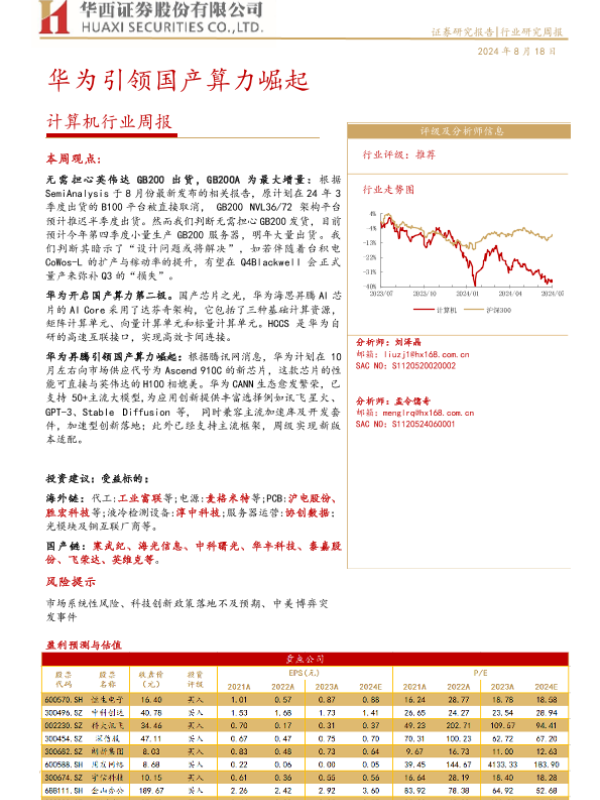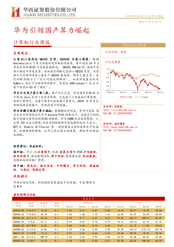 【华西证券】【20240818】计算机行业周报:华为引领国产算力崛起-27页