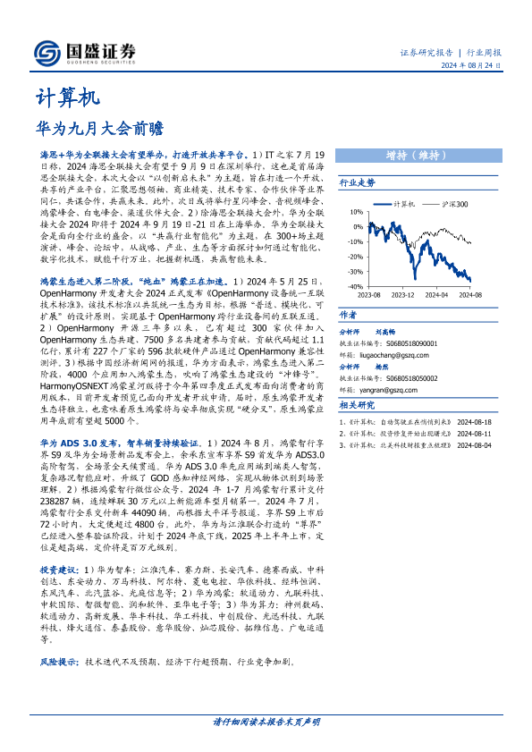 【国盛证券】【20240824】20240824-国盛证券-计算机行业周报:华为九月大会前瞻-11页