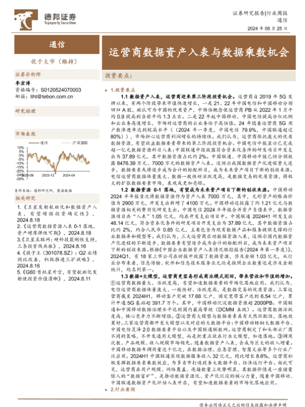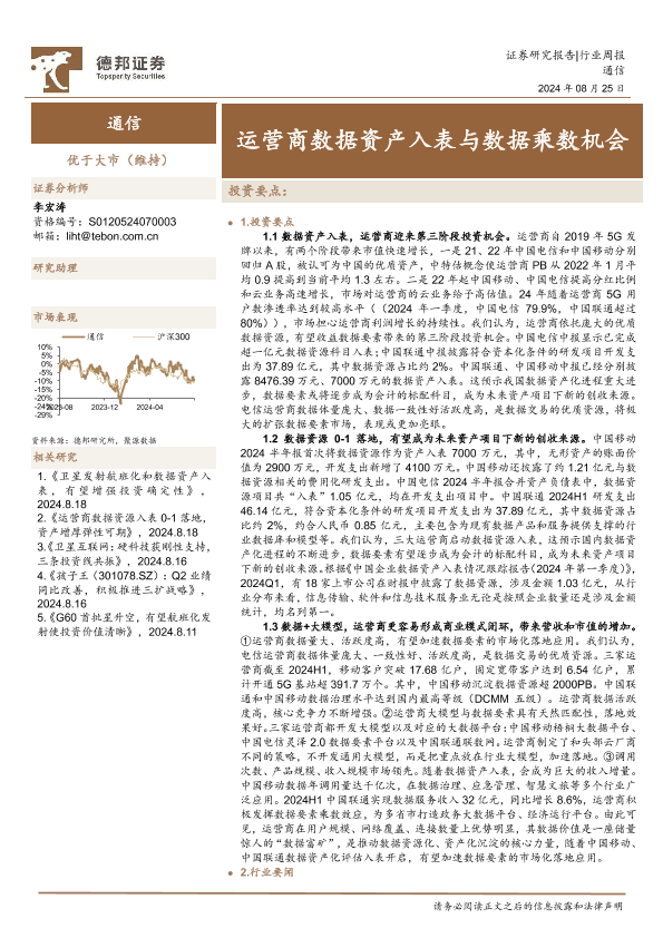【德邦证券】【20240825】通信行业周报:运营商数据资产入表与数据乘数机会-20页