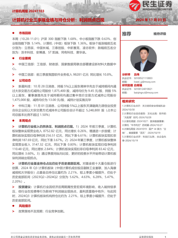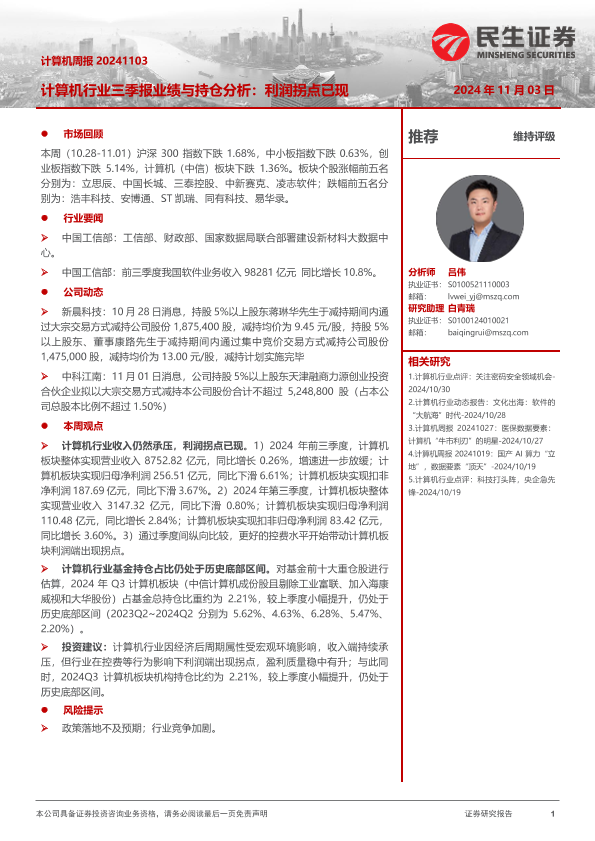 【民生证券】【20241103】计算机行业三季报业绩与持仓分析:利润拐点已现-22页
