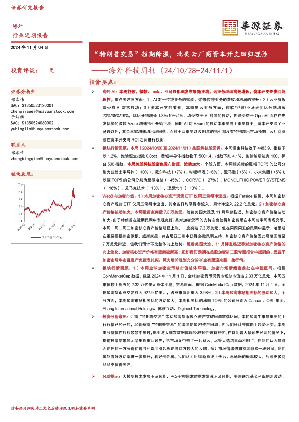 【华源证券】【20241104】海外科技周报:“特朗普交易”短期降温,北美云厂商资本开支回归理性-15页