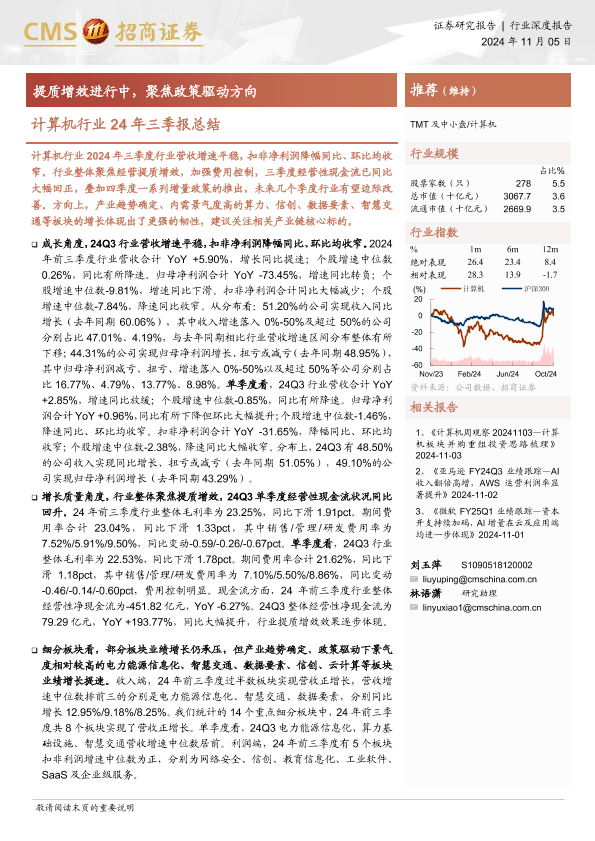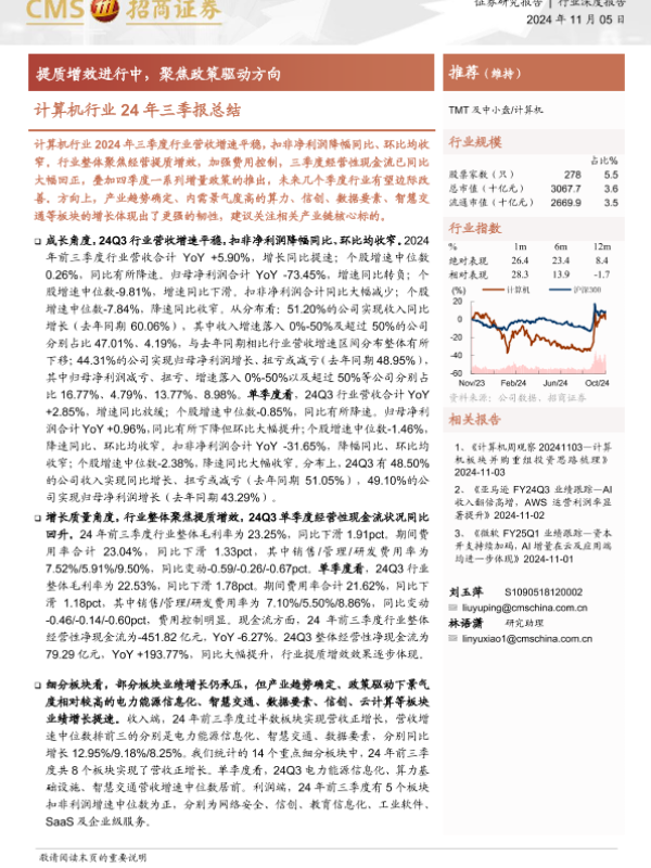 【海通证券】【20241105】20241105-招商证券-计算机行业24年三季报总结:提质增效进行中,聚焦政策驱动方向-44页