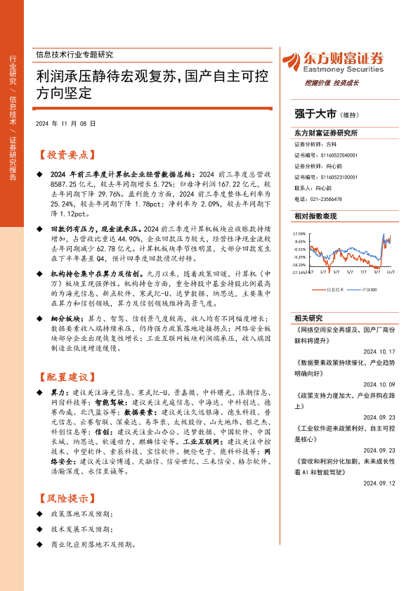 【东方财富证券】【20241108】信息技术行业专题研究:利润承压静待宏观复苏,国产自主可控方向坚定-19页