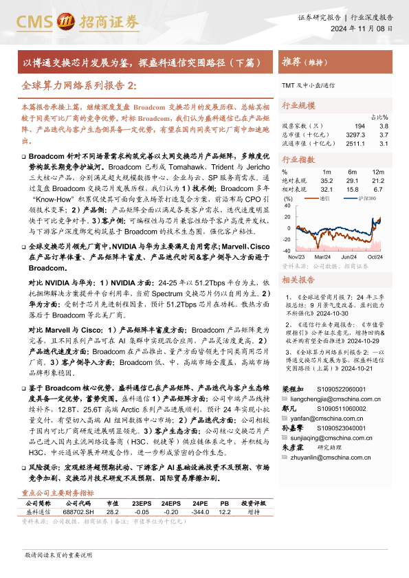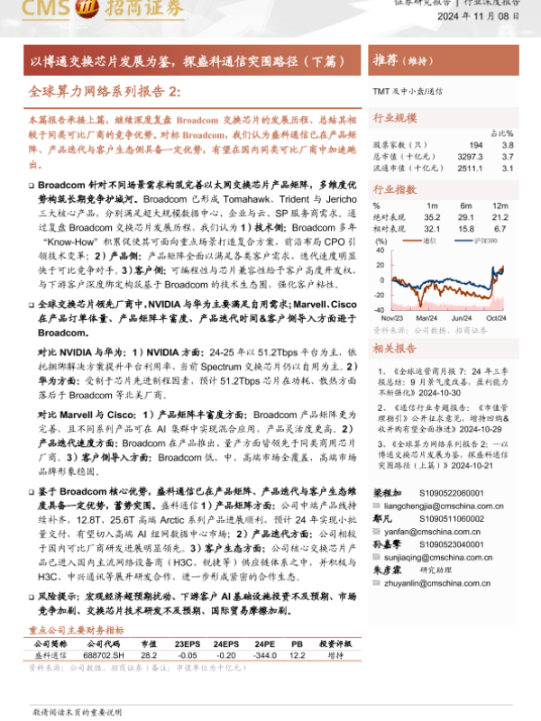 Broadcom 交换芯片 全球算力网络 盛科通信 通信行业