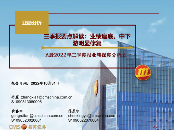 【海通证券】【20221031】A股2022年三季度报业绩深度分析之一:三季报要点解读,业绩磨底,中下游明显修复-31页