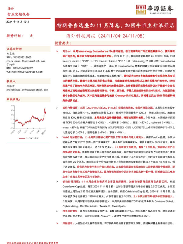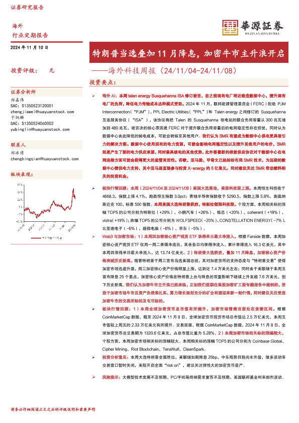 【华源证券】【20241110】海外科技周报:特朗普当选叠加11月降息,加密牛市主升浪开启-13页