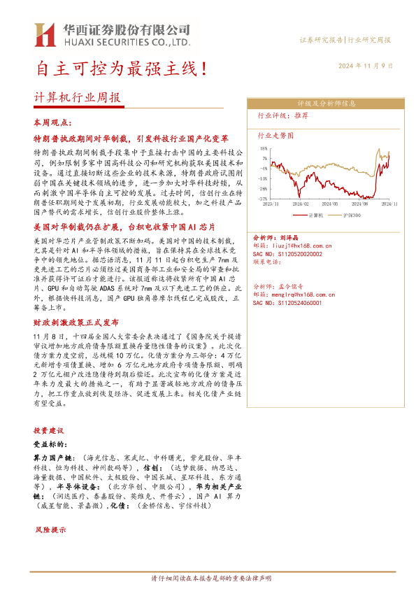 【华西证券】【20241109】20241109-华西证券-计算机行业周报:自主可控为最强主线!-29页
