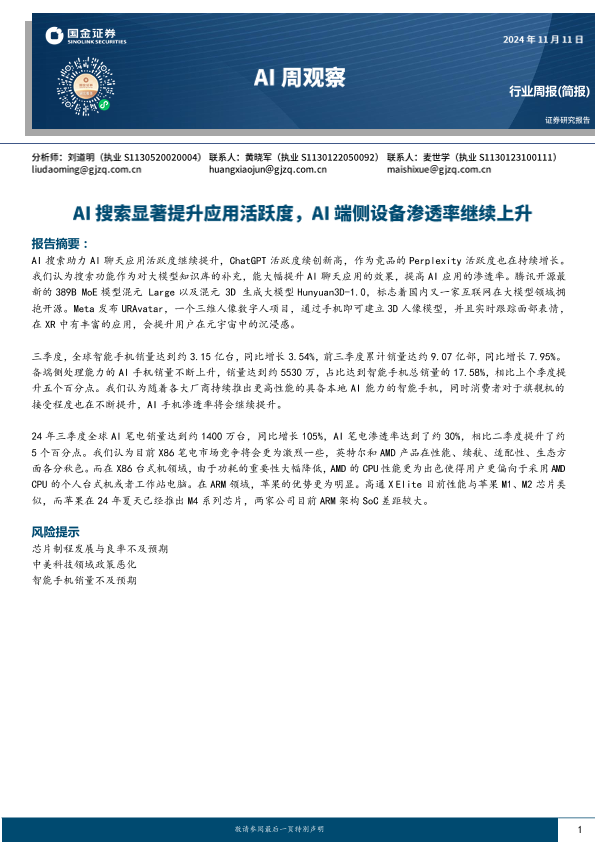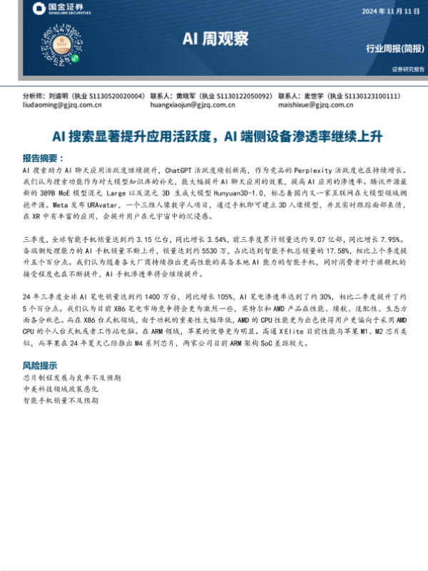 【国金证券】【20241111】AI周观察:AI搜索显著提升应用活跃度,AI端侧设备渗透率继续上升-11页