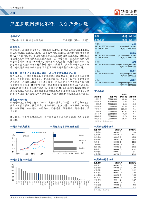 【华泰证券】【20241111】科技行业周报(第四十五周):卫星互联网催化不断,关注产业机遇-17页