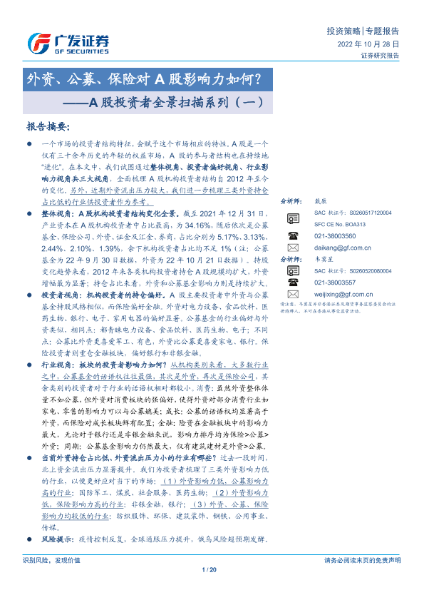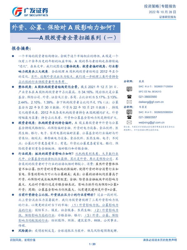 【广发证券】【20221028】A股投资者全景扫描系列(一):外资、公募、保险对A股影响力如何?-20页