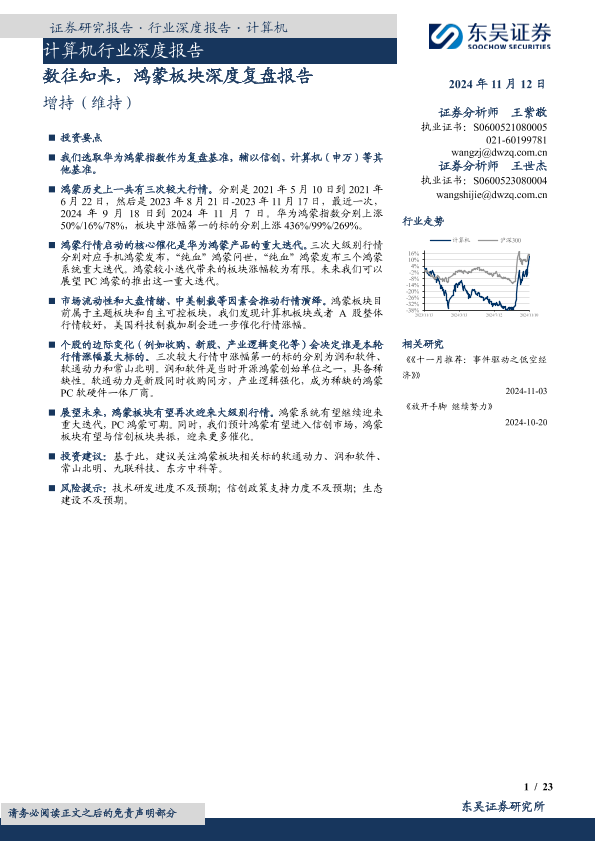 【东吴证券】【20241112】20241112-东吴证券-计算机行业深度报告:数往知来,鸿蒙板块深度复盘报告-23页