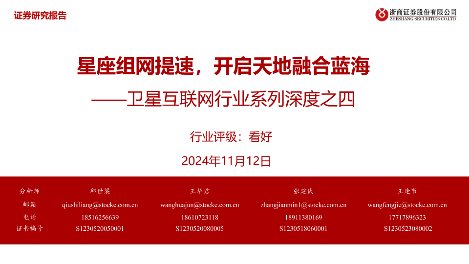 【浙商证券】【20241112】卫星互联网行业系列深度之四:星座组网提速,开启天地融合蓝海-33页