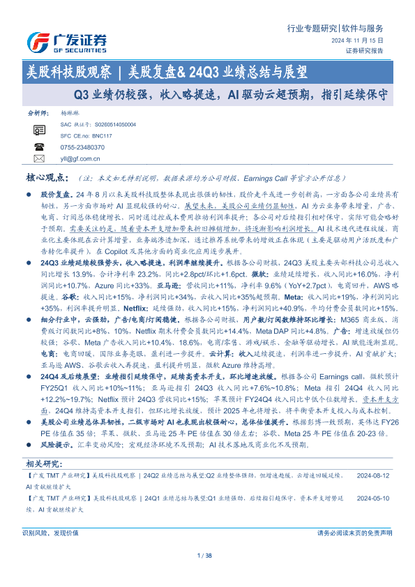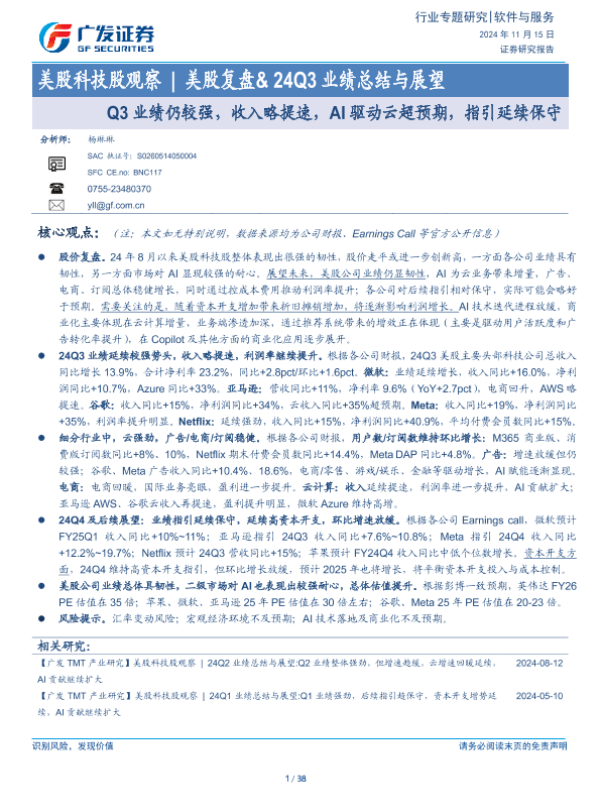 【广发证券】【20241115】软件与服务行业美股科技股观察|美股复盘&24Q3业绩总结与展望-38页