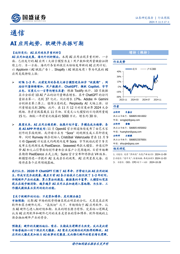 【国盛证券】【20241117】通信行业周报:AI应用起势,软硬件共振可期-12页