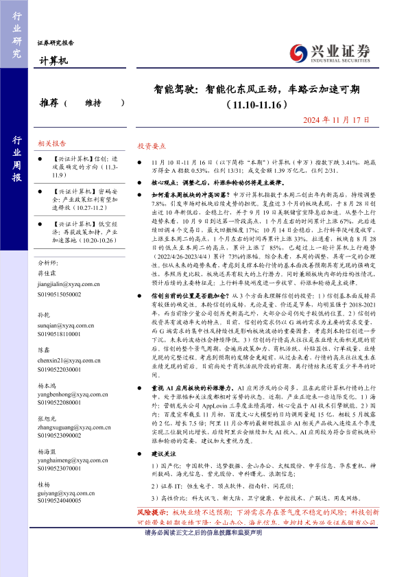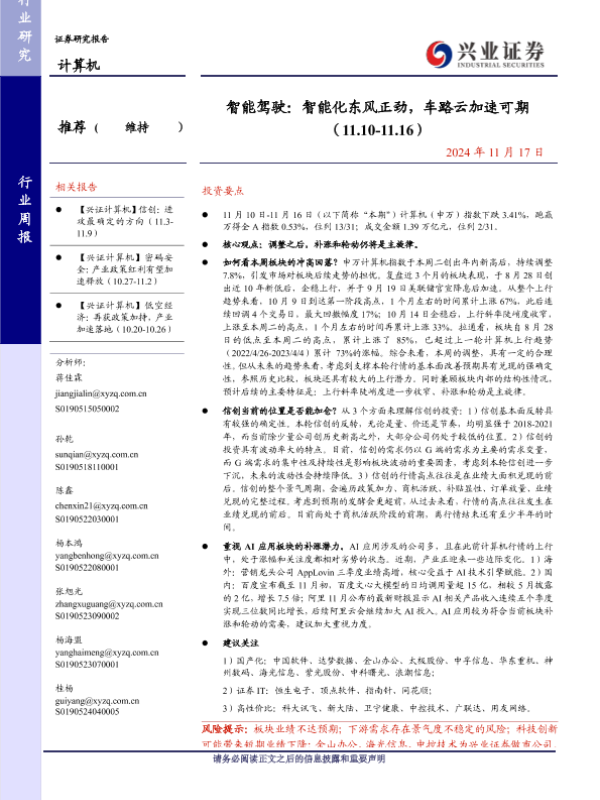 【兴业证券】【20241117】智能驾驶:智能化东风正劲,车路云加速可期-23页