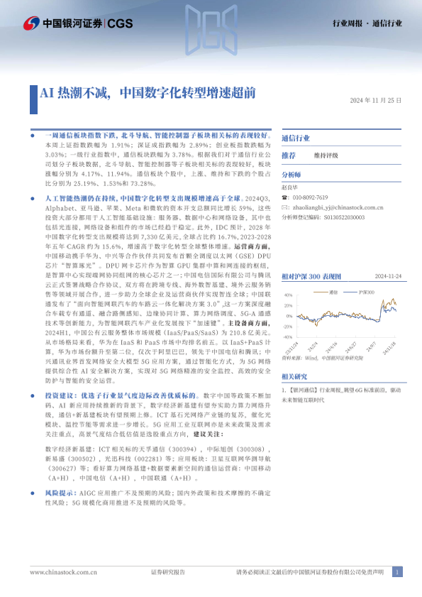 【银河证券】【20241125】通信行业行业周报:AI热潮不减,中国数字化转型增速超前-16页