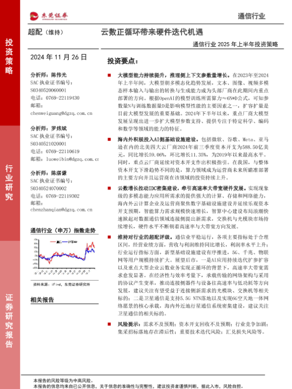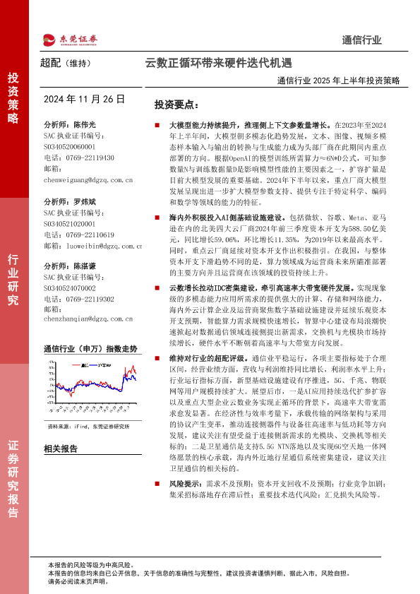 【东莞证券】【20241126】通信行业2025年上半年投资策略:云数正循环带来硬件迭代机遇-32页