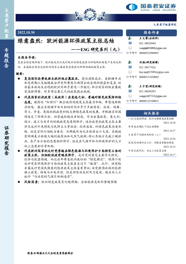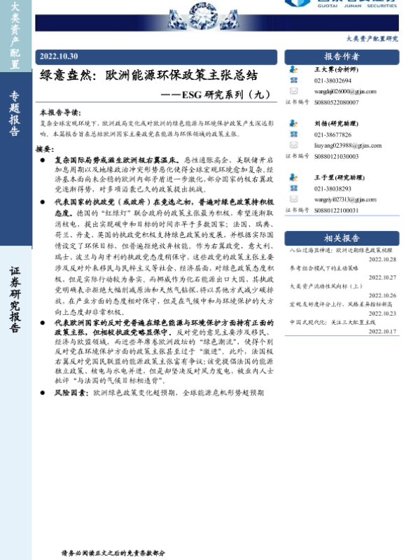 【国泰君安证券】【20221030】绿意盎然:欧洲能源环保政策主张总结-15页