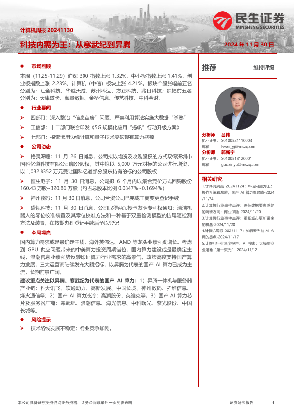 【民生证券】【20241130】计算机周报:科技内需为王:从寒武纪到昇腾-18页