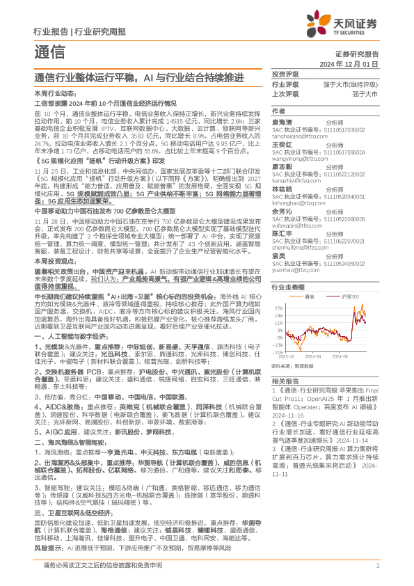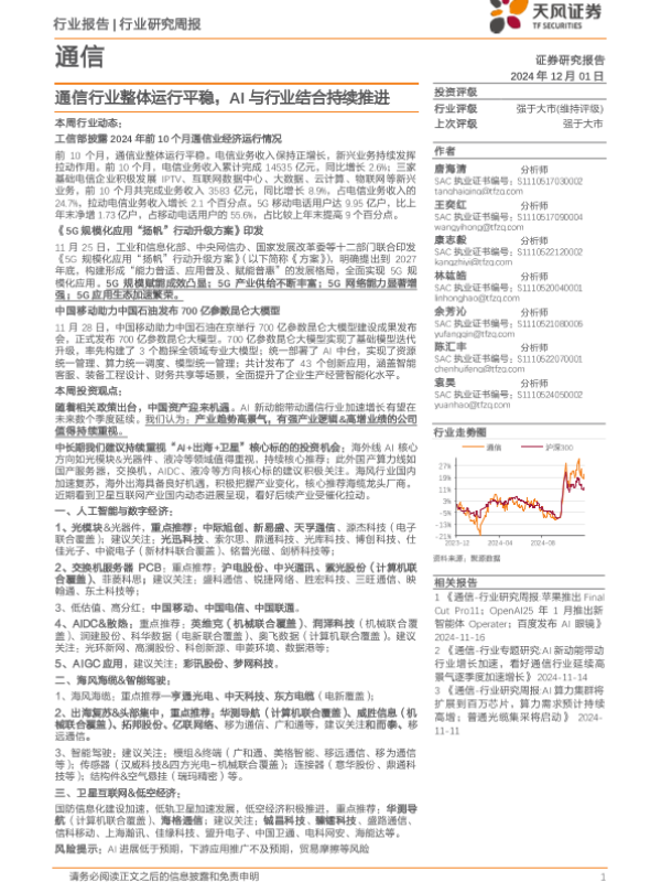 【天风证券】【20241201】通信行业研究周报:通信行业整体运行平稳,AI与行业结合持续推进-11页