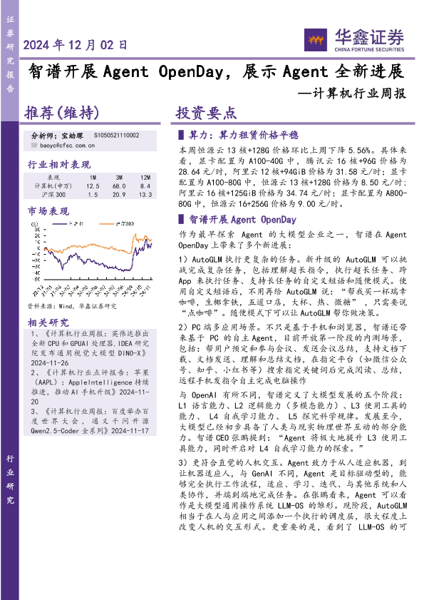 【华鑫证券】【20241202】20241202-华鑫证券-计算机行业周报:OpenDay,展示Agent全新进展-14页