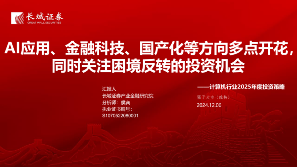 【长城证券】【20241206】计算机行业2025年度投资策略:AI应用、金融科技、国产化等方向多点开花,同时关注困境反转的投资机会-64页