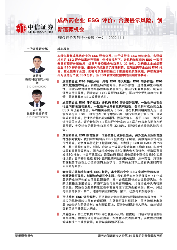 【中信证券】【20221101】ESG评价系列行业专题(一):成品药企业ESG评价,合规提示风险,创新蕴藏机会-35页