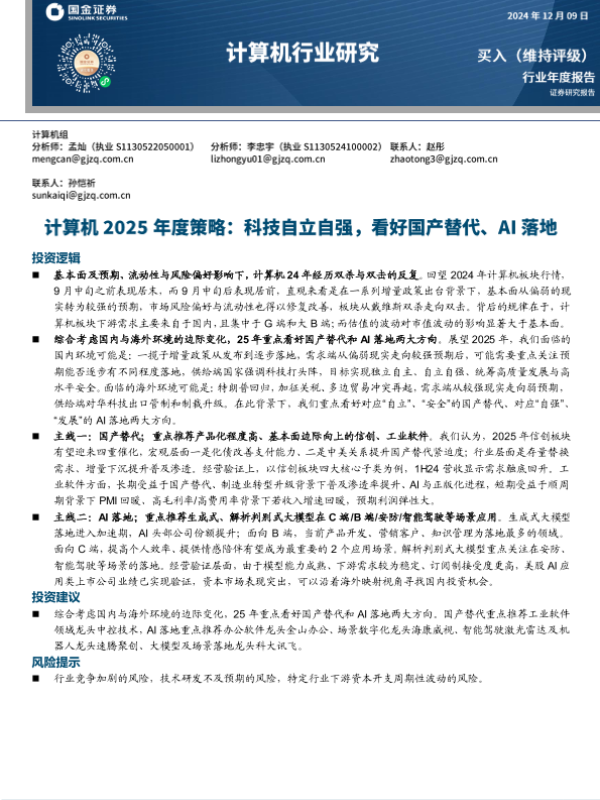 【国金证券】【20241209】计算机2025年度策略:科技自立自强,看好国产替代、AI落地-23页