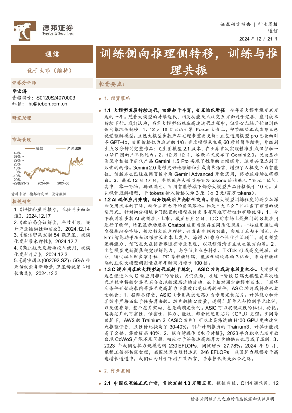 【德邦证券】【20241221】20241221-德邦证券-通信行业周报:训练侧向推理侧转移,训练与推理共振-20页