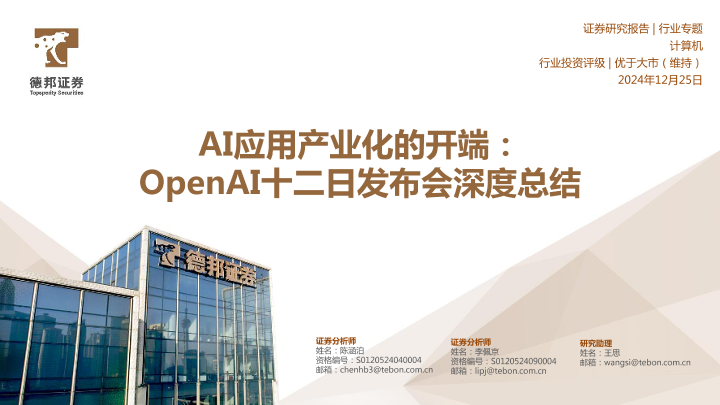 【德邦证券】【20241225】AI应用产业化的开端:OpenAI十二日发布会深度总结-28页