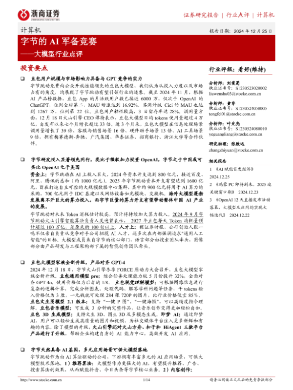 【浙商证券】【20241225】大模型行业点评:字节的AI军备竞赛-14页